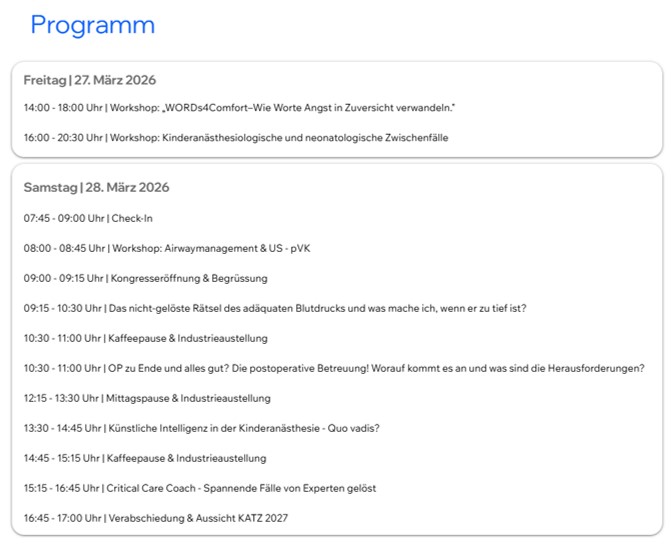 Kinderanästhesietag Zürich (KATZ) 2026