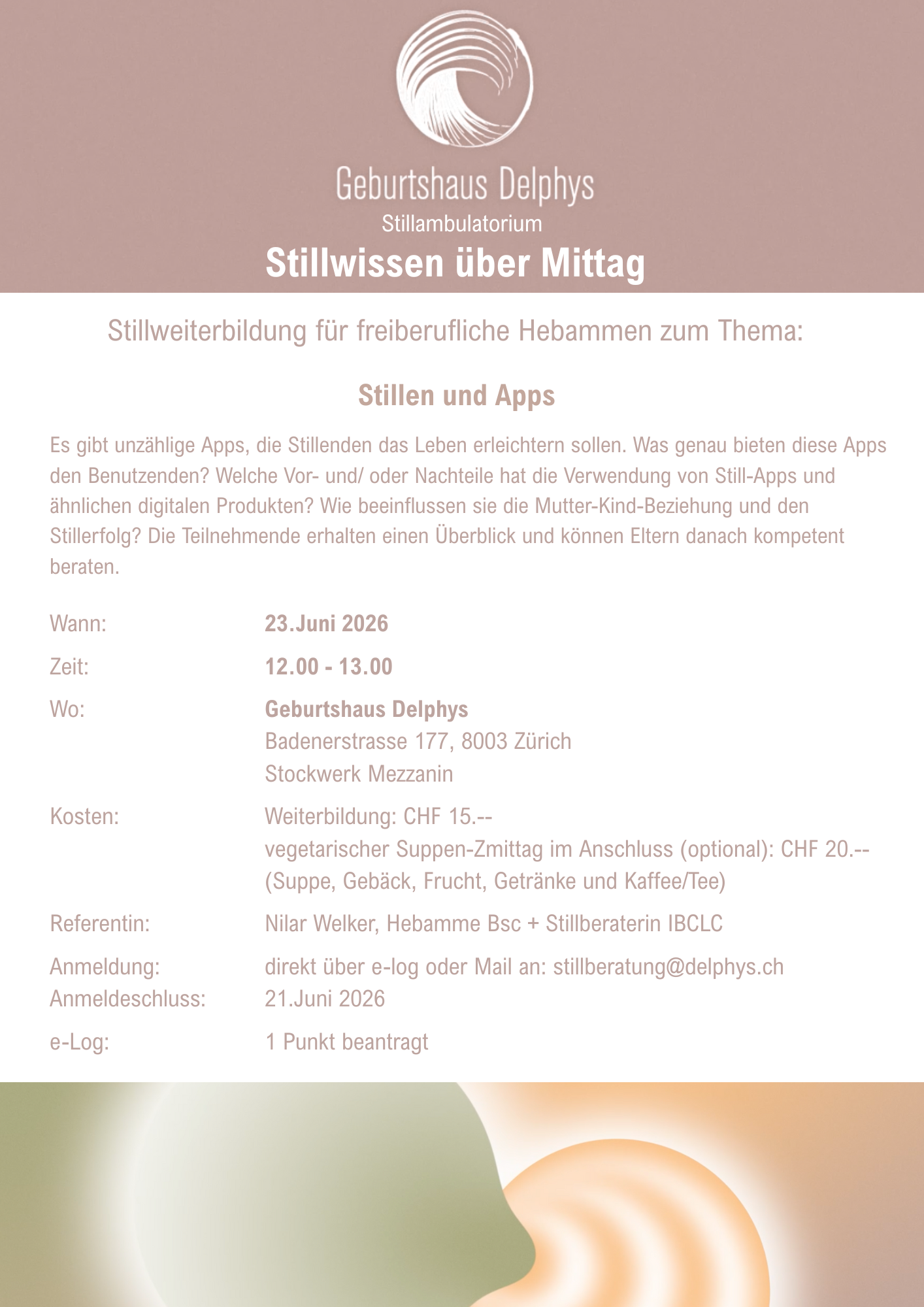 Es gibt unzählige Apps, die Stillenden das Leben erleichtern sollen. Was genau bieten diese Apps den Benutzenden? Welche Vor- und/ oder Nachteile hat die Verwendung von Still-Apps und ähnlichen digitalen Produkten? Wie beeinflussen sie die Mutter-Kind-Beziehung und den Stillerfolg? Die Teilnehmende erhalten einen Überblick und können Eltern danach kompetent beraten.